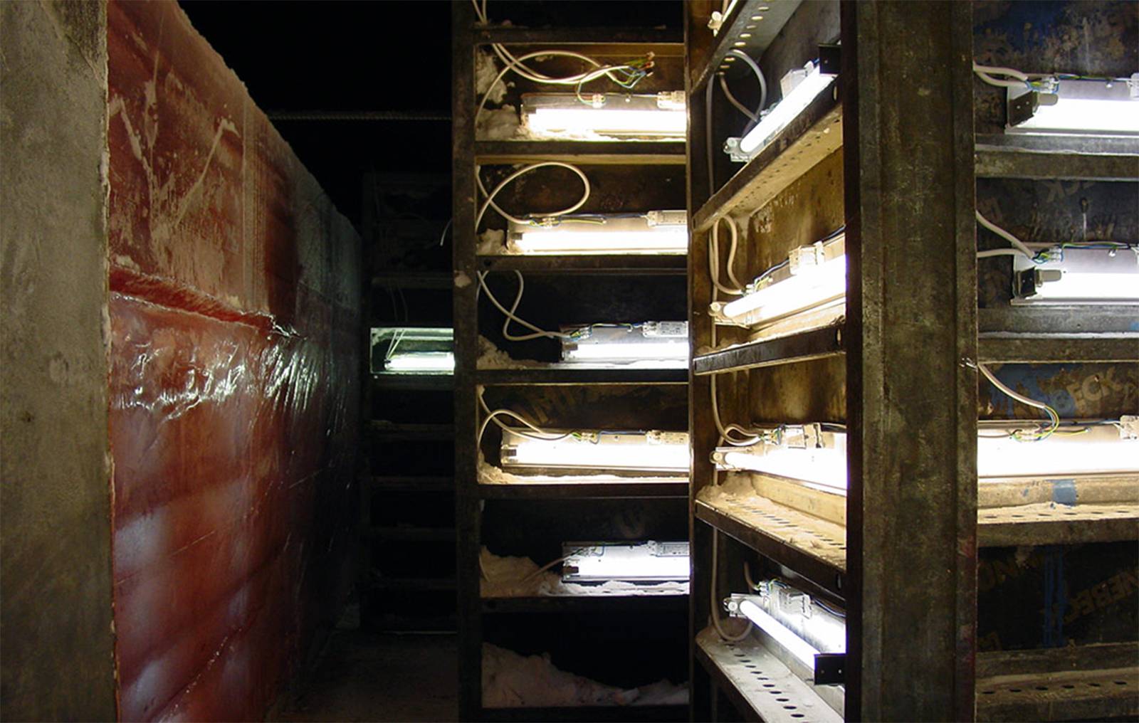 Attach fluorescent tubes to some of the moulds.