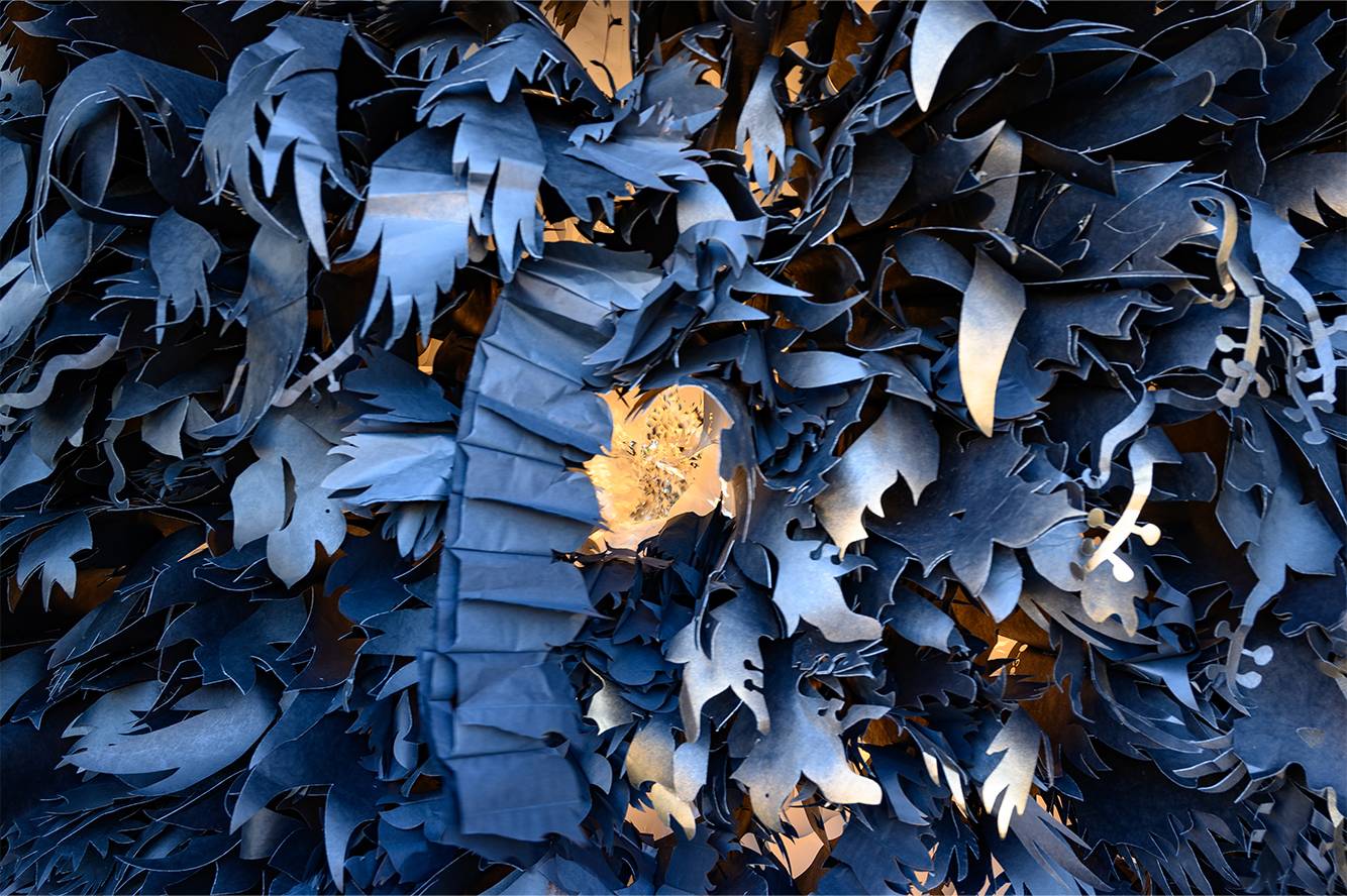 In the Cry Joy Park series, contrasting black and white paper gardens invite the audience into an imagined utopian and dystopian landscape to explore various issues of social inequality, beneath the umbrella of environmental justice.