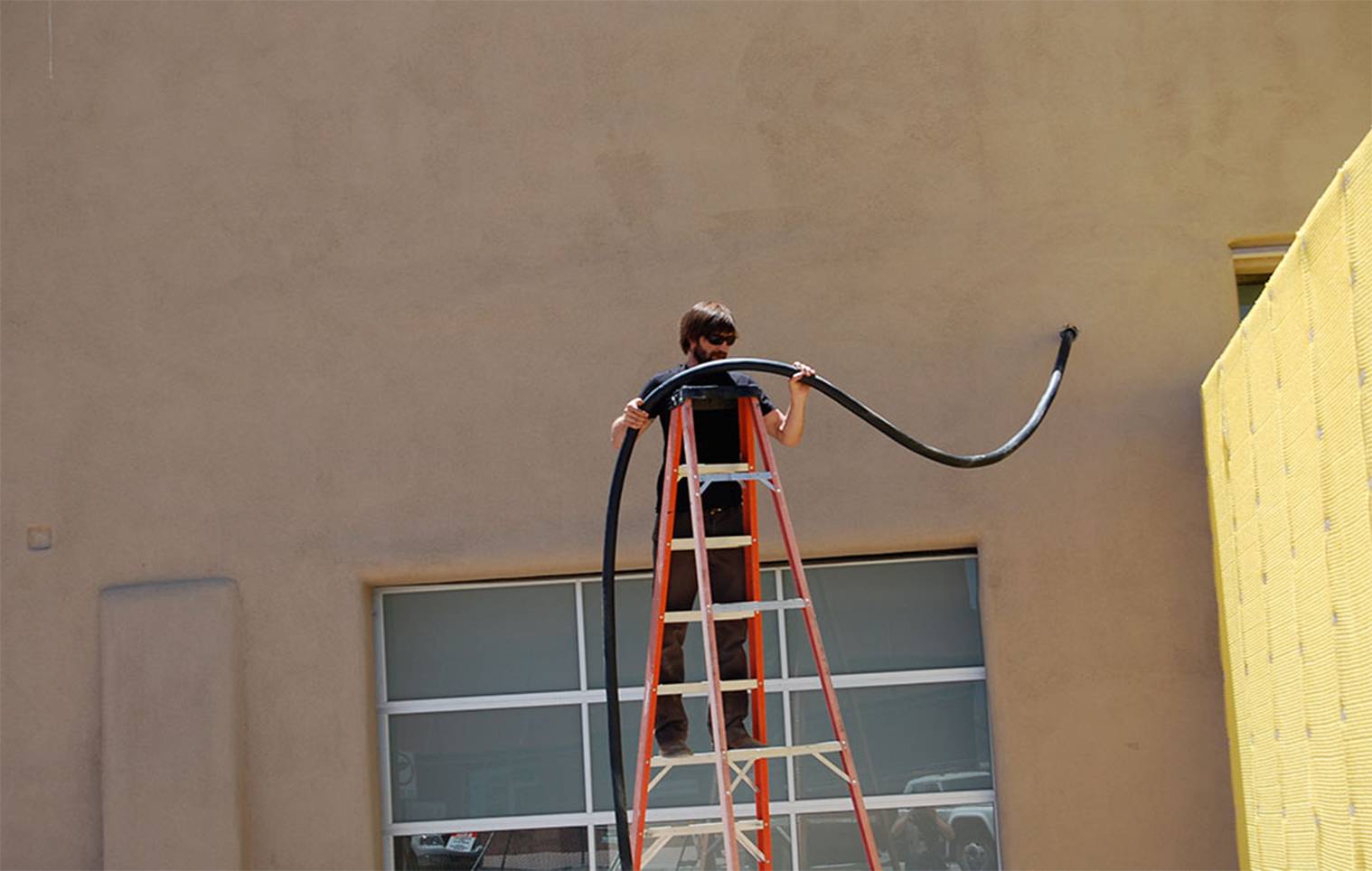 Fourth Wall consists of a heavy current connection taken from the electricity system of the city of Santa Fe, leading throughout the building and terminating with a connection box in an otherwise empty room. It carries voltage high enough to power e.g. a large theater, a dark ride, the Eiffel Tower or to provide a medium-sized city with electricity
