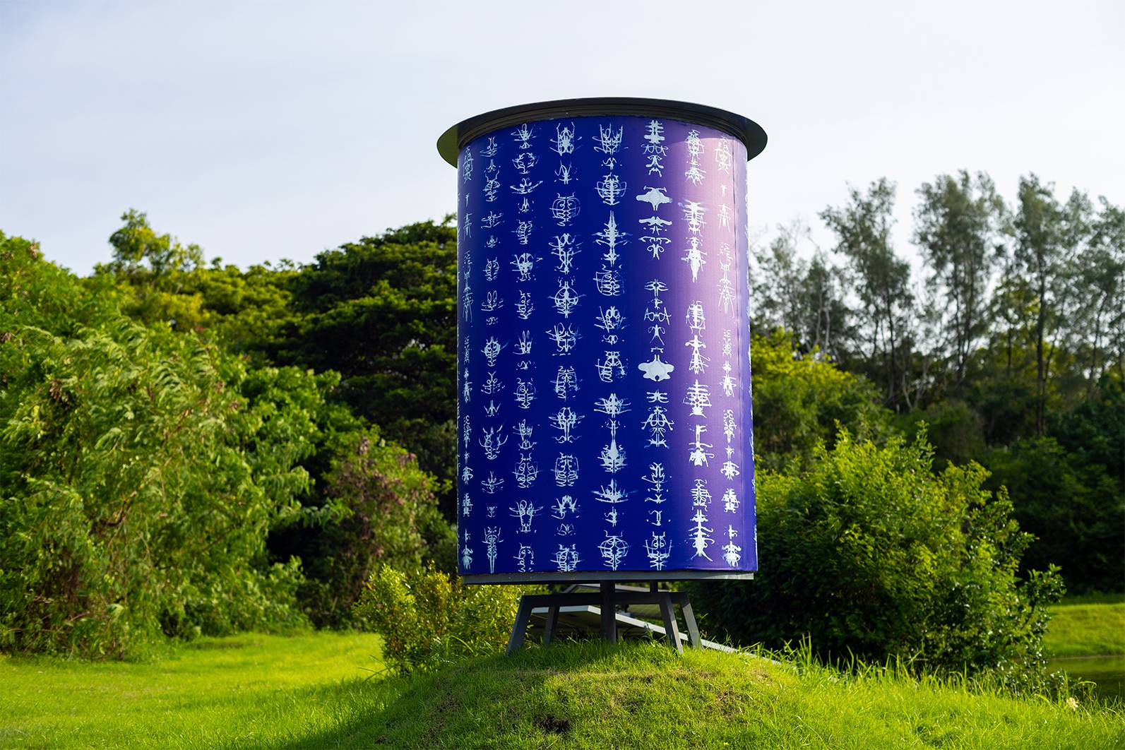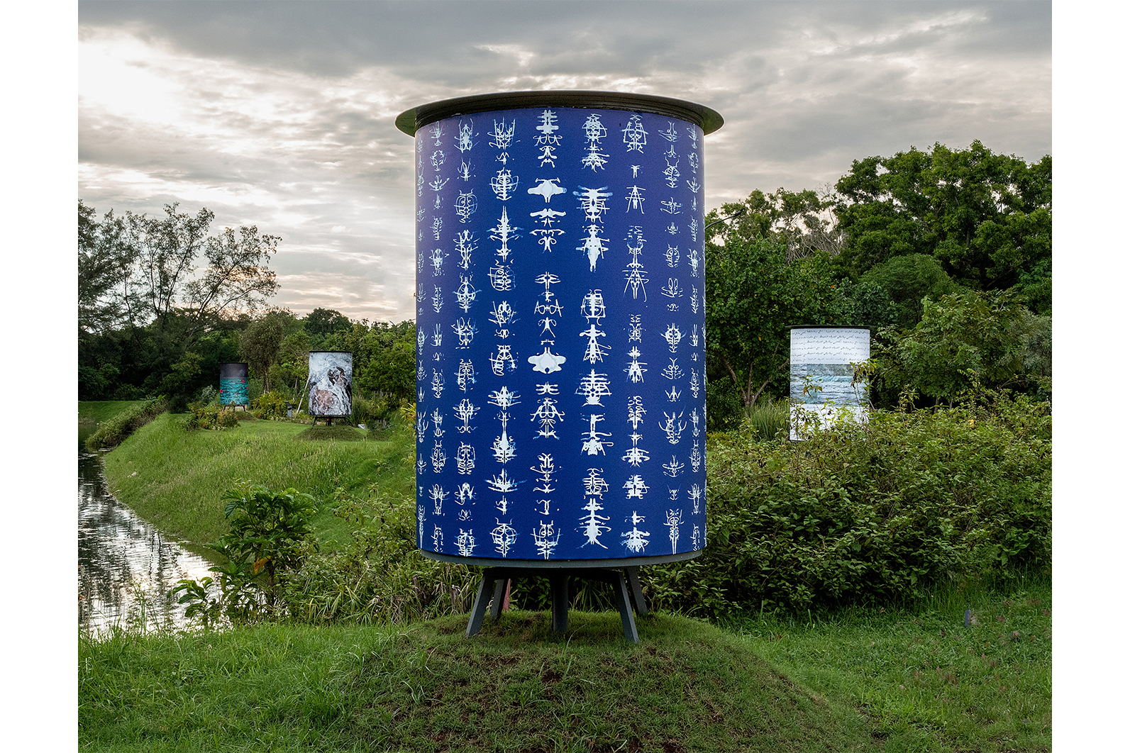 Holten writes and rewrites the phrase “water is life” in blue ink on white paper. As she writes, she gently caresses each letter, pressing them like flower petals preserved between the pages of a book. The letters and words mirror themselves, like reflections in water.