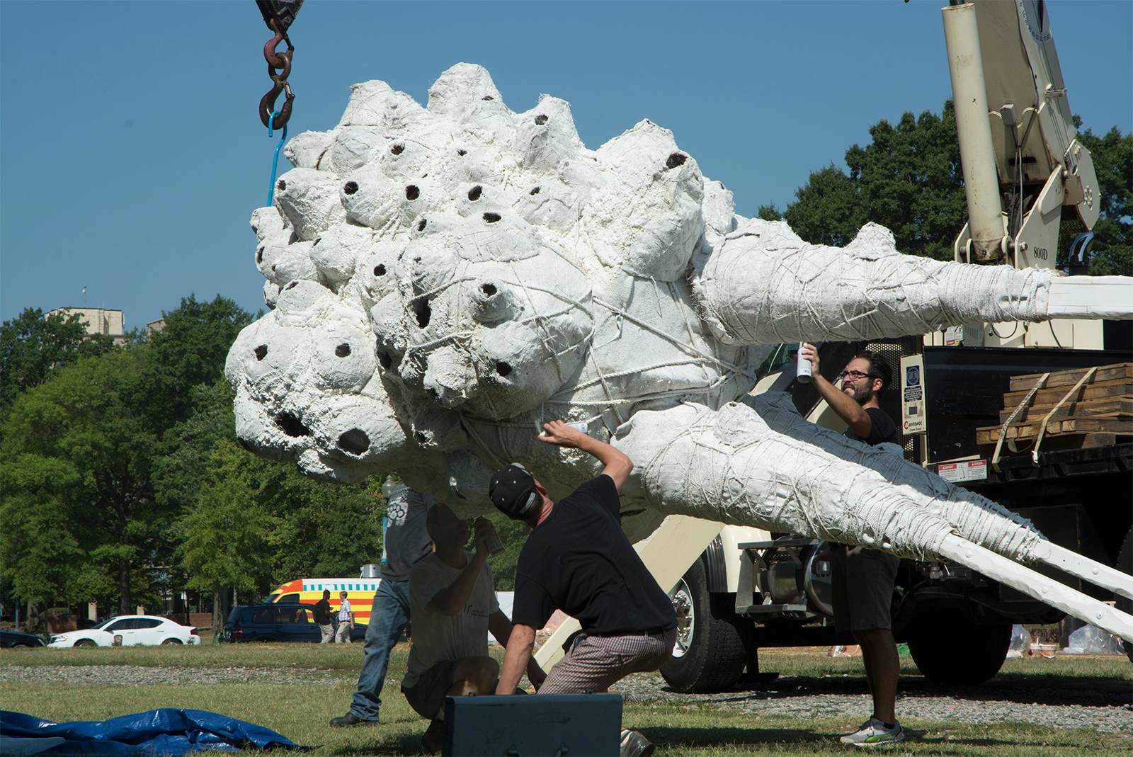 Migration is a nonument for a home threatened, yet resilient in the face of displacement and climate change. Migration brings to light marginalized communities in the urban ecosystem of Washington DC. Symbolically, these nests are much like neighborhoods now on the move, embracing, adapting, or resisting forces of gentrification sweeping the city. Practically, each piece provides respite along the Atlantic Flyway for birds, more than half of which are changing their nest sites and migratory patterns on an unprecedented scale to adapt to habitat loss as a result of warming temperatures. At the same time, many urban residents may be asked to leave their homes as a result of un-inclusive urban redevelopment strategies.
