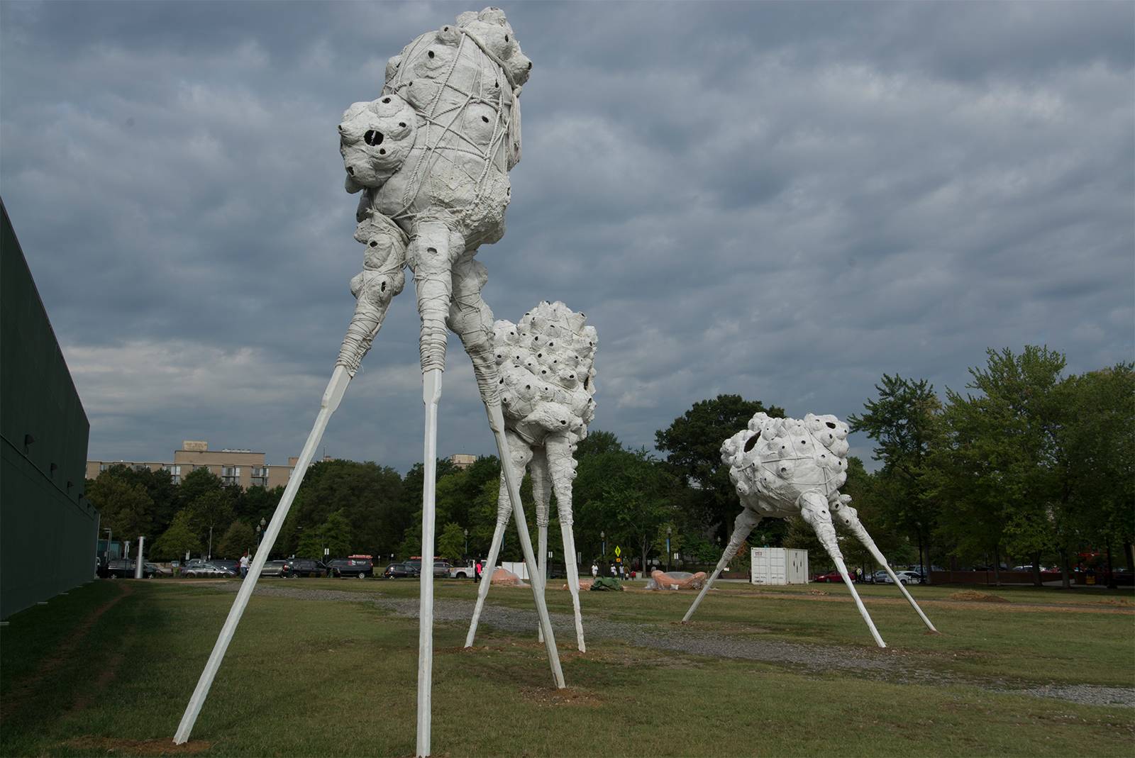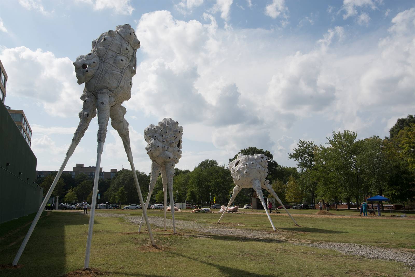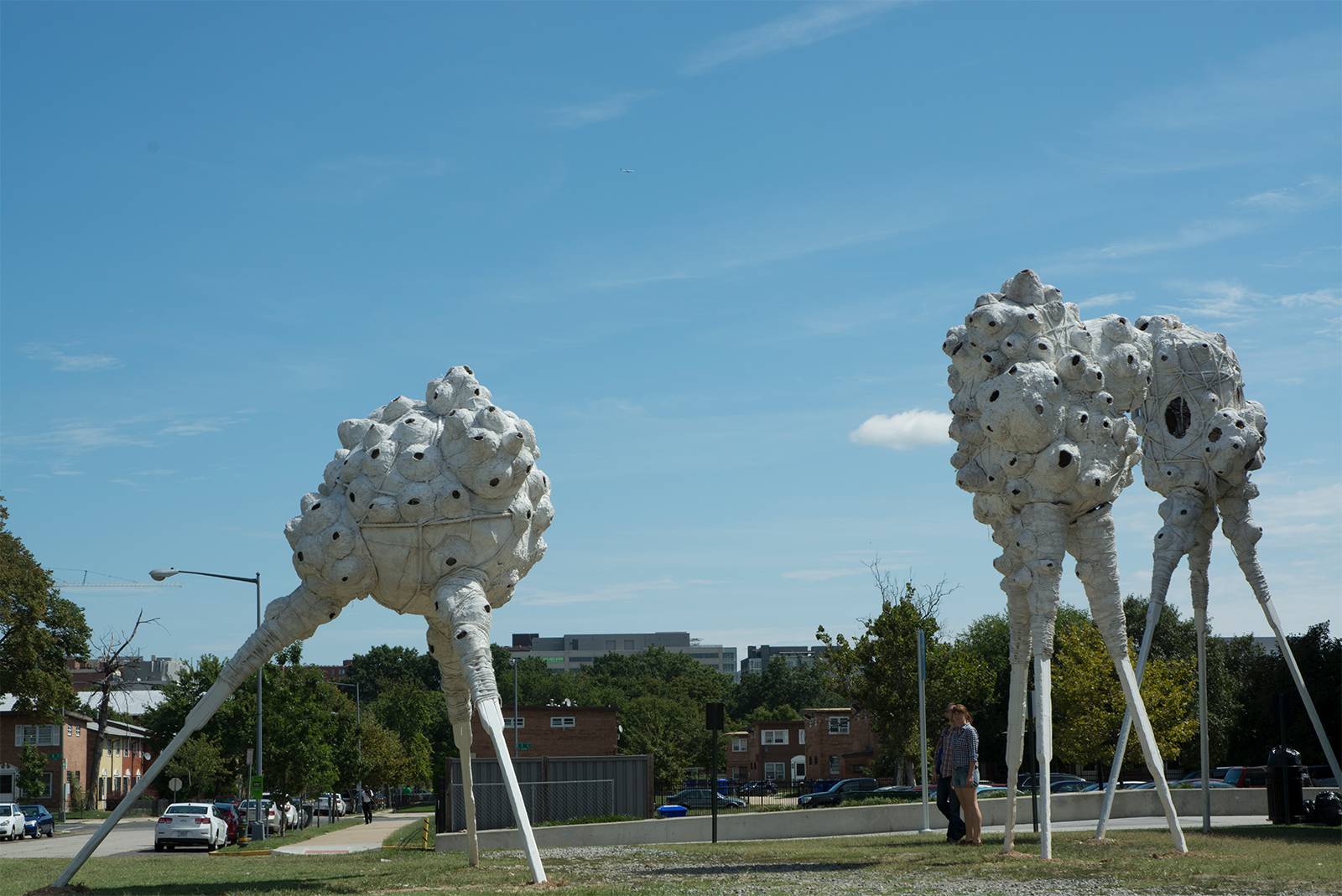 My experience with Southwest DC really began while installing Migration for Nonuments. While my work was often warmly received, comments like I love art as habitat for bird life, but do any of them shelter people? really resonated. I wanted to say YES of course, as it was originally part of my plan. But ironically, the legal and political challenges of access public art shares with public housing are many. The forms and scale of Migration also reminded others of an alien invasion. While initially a humorous allusion to science fiction, it poignantly suggests a feeling some residents share that their neighborhood is being colonized by forces beyond their control. Communities would like to see their neighborhoods improve, as long as existing residents are allowed to participate in the decision-making process.