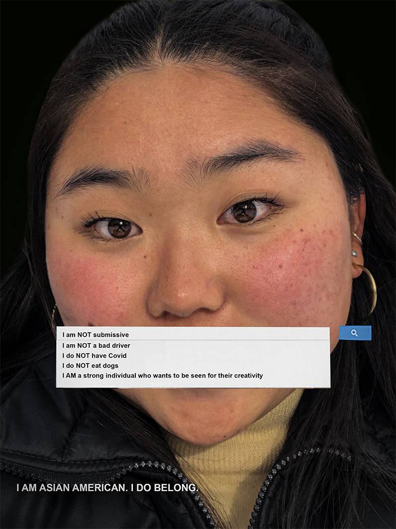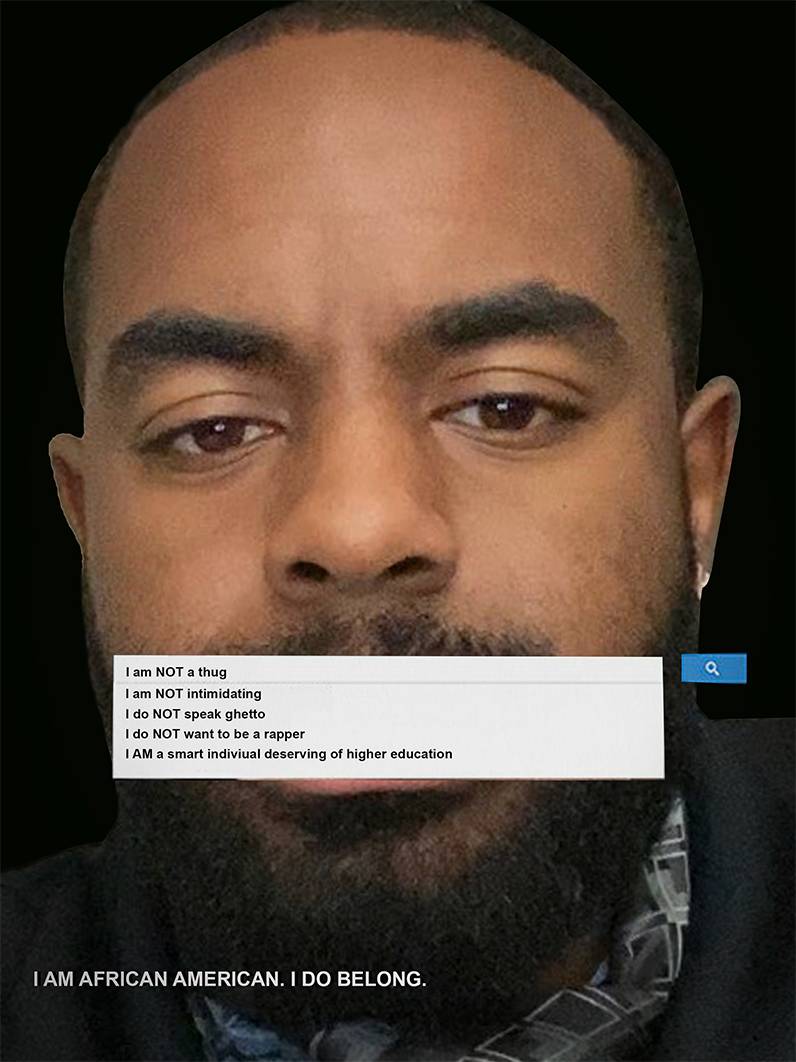 One of my friends had his white, computer science professor ask him if he belonged in University simply because the student was the only person of color enrolled in the course. That is the type of shameful and repugnant interaction that really discourages a person from doing what they love and meet their full potential simply because of negative stereotypes. My intention behind “Not Defined” is to represent how stereotypes can silence and inhibit us. Beginning at a young age, stereotypes make feel us “less than” when in reality we are not defined by these inaccuracies. We do not have to allow or succumb to intentional lies meant to suppress certain groups of people, rather, all should support one another for a healthier and more beautiful world to live in.