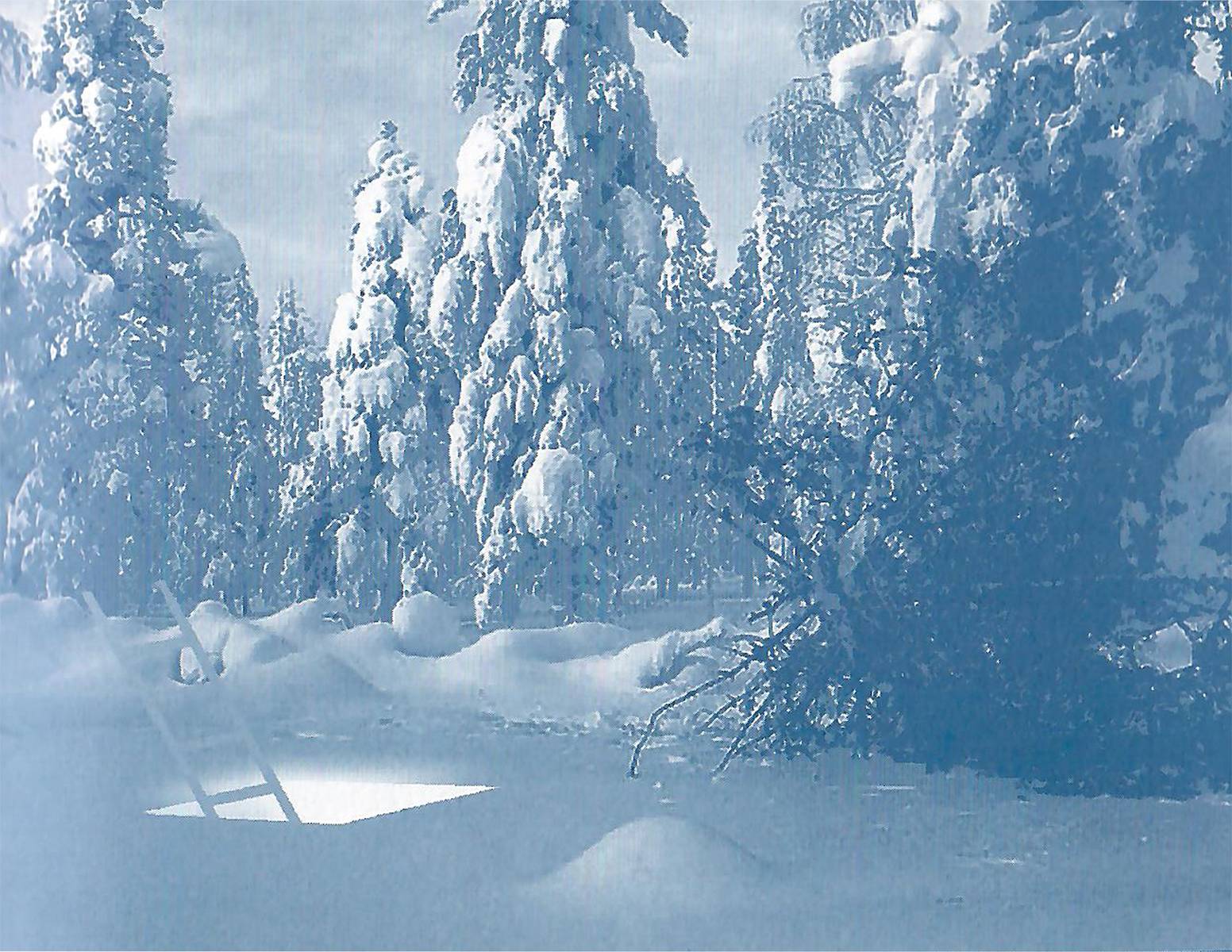 Snow falls thick in eerie silence