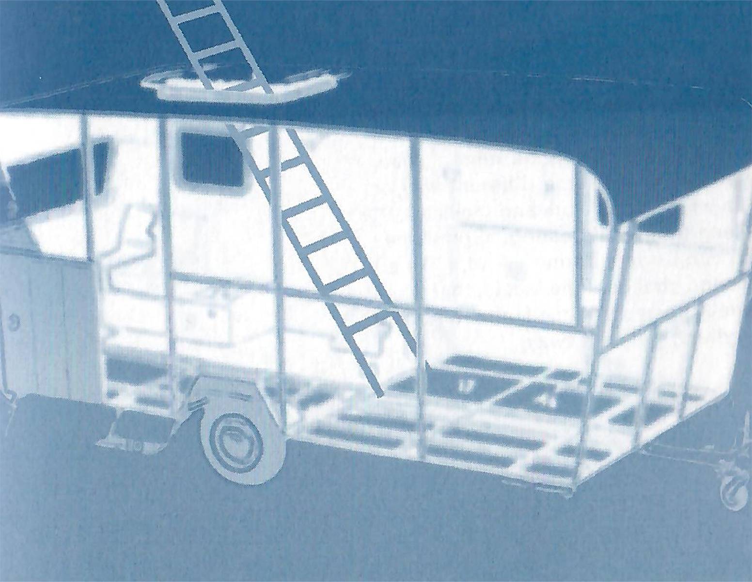 The caravan is slowly covered with snow.