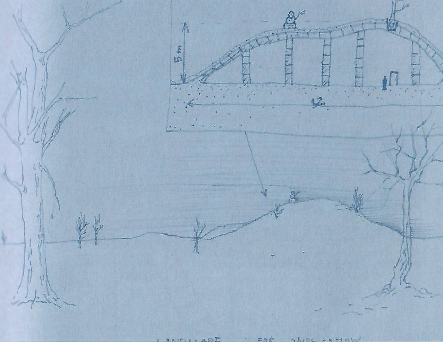 Coloured water is used in the snow canon and the sculpture changes slowly towards spring.