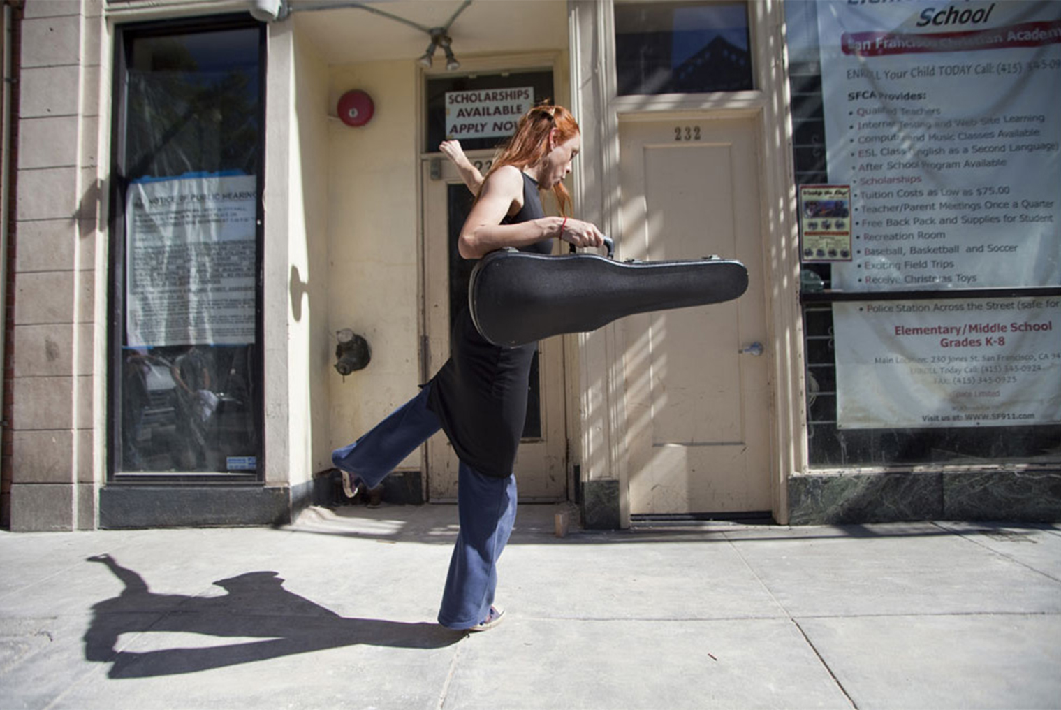 Based on narratives of homeless woman, collected via interviews in the Tenderloin, Personal Geographies is a collaborative performance created by choreographer Regina Miranda and performer Patricia Niedermeier. The interactive choreography, which evolves along the streets of the neighborhood, explores the causes that send women onto the streets, or into behaviors that are out of the norm, provoking a reflection on the myriad of emotional losses and survival struggles of women who suddenly see themselves without a home, becoming nearly invisible to the world around them.