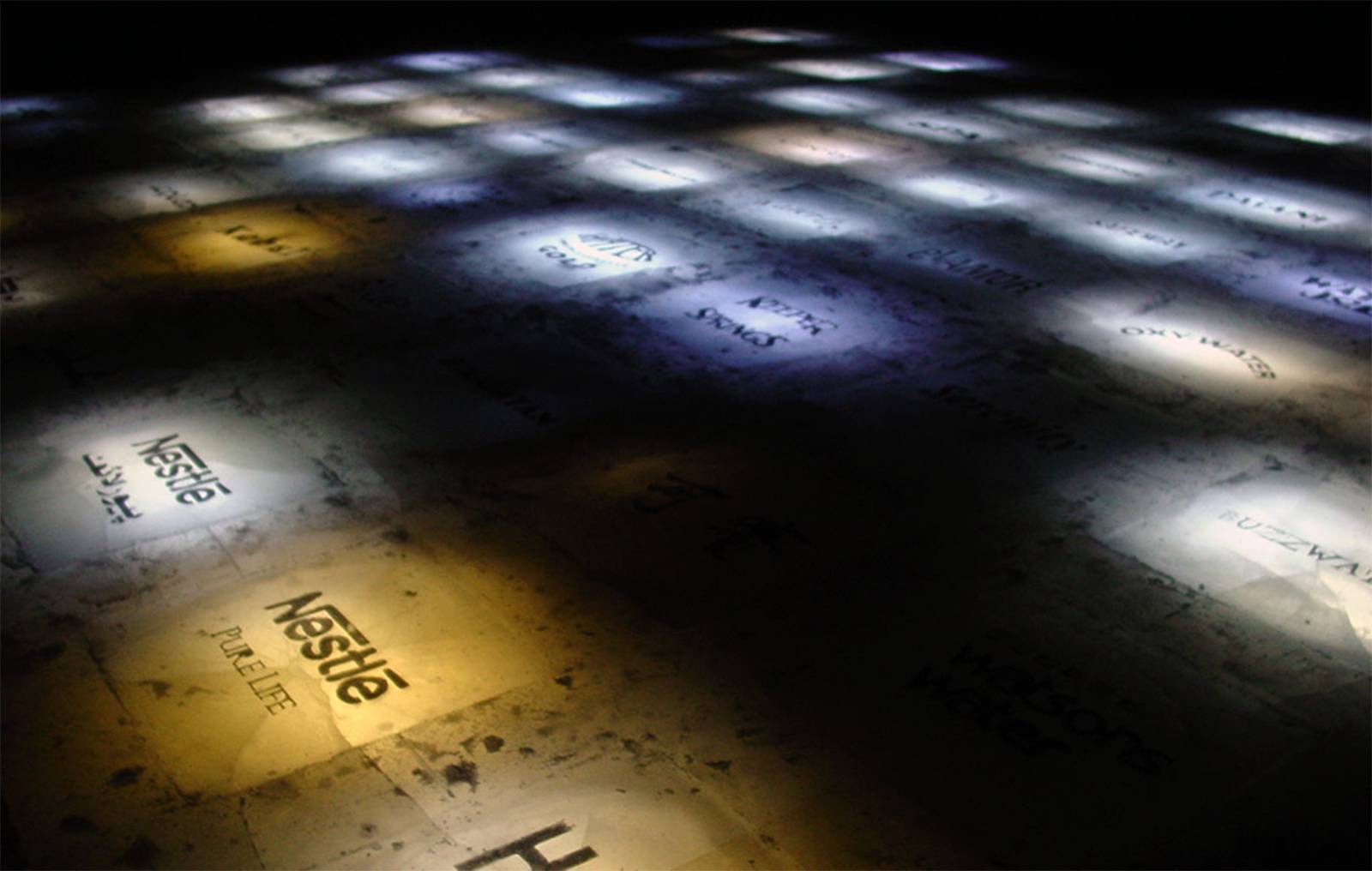 Pure Mix is a 81 sq. meter water mosaic, embedded within Kemi’s frozen sea. This field of frozen water is composed of 81 inscribed ice blocks, each of them constructed out of 170 liters of branded water from around the globe. This geo-political and cultural matrix of waters is cyclically transformed: natural water purified by commerce, organized by ethos and sublimated by nature.