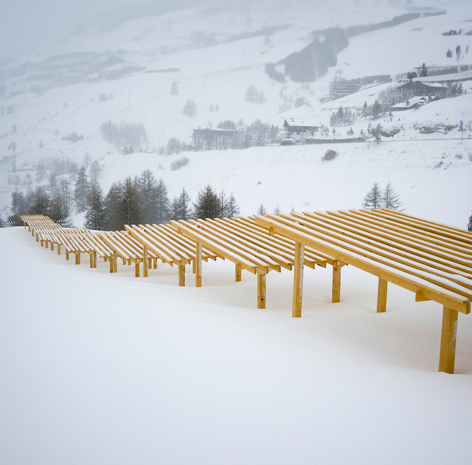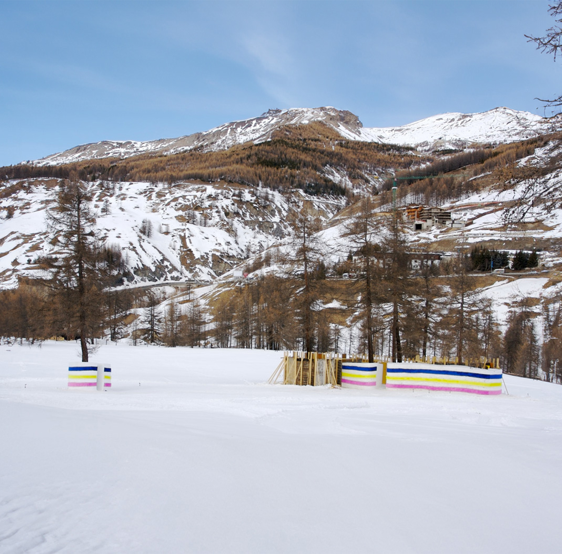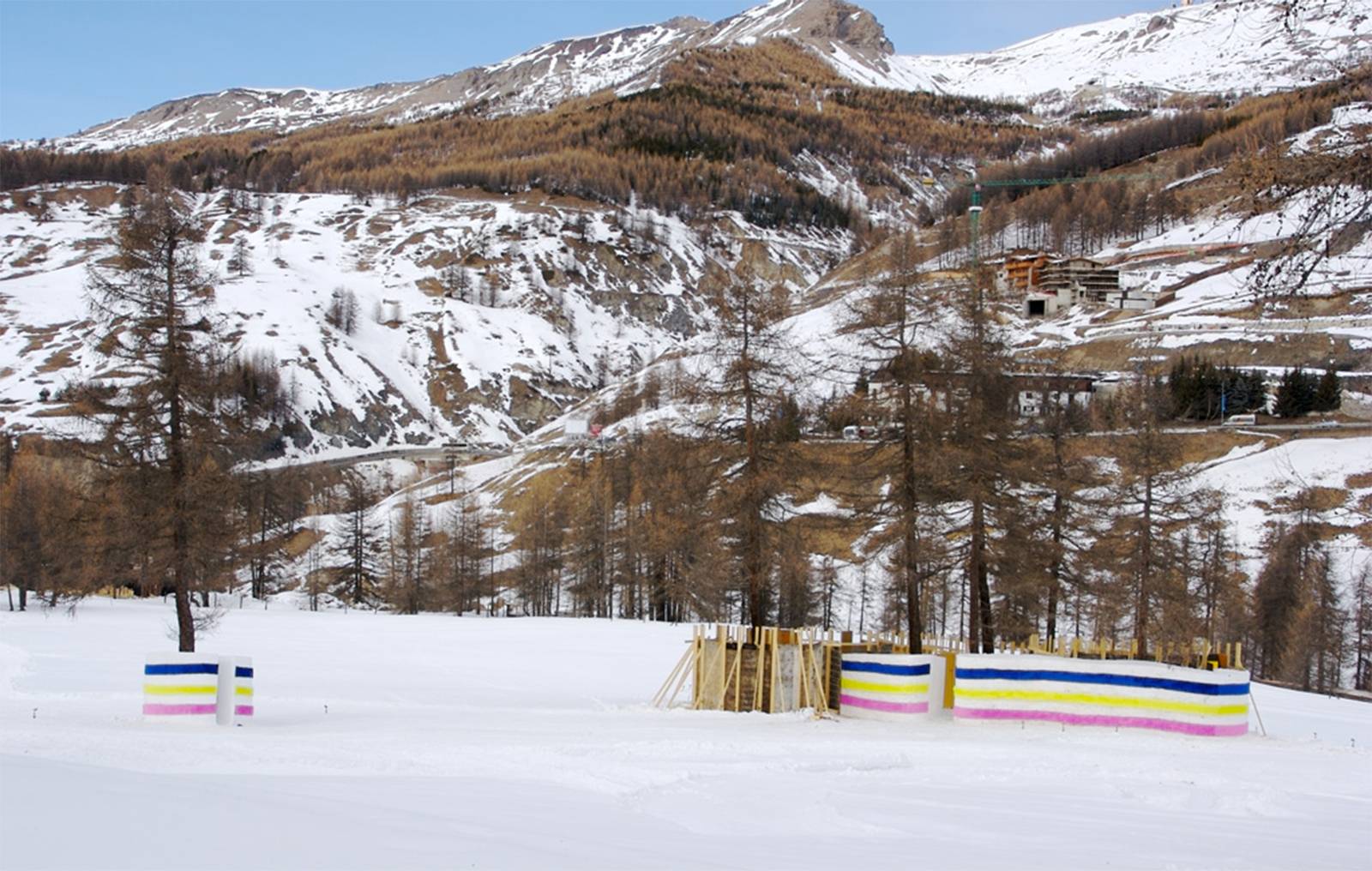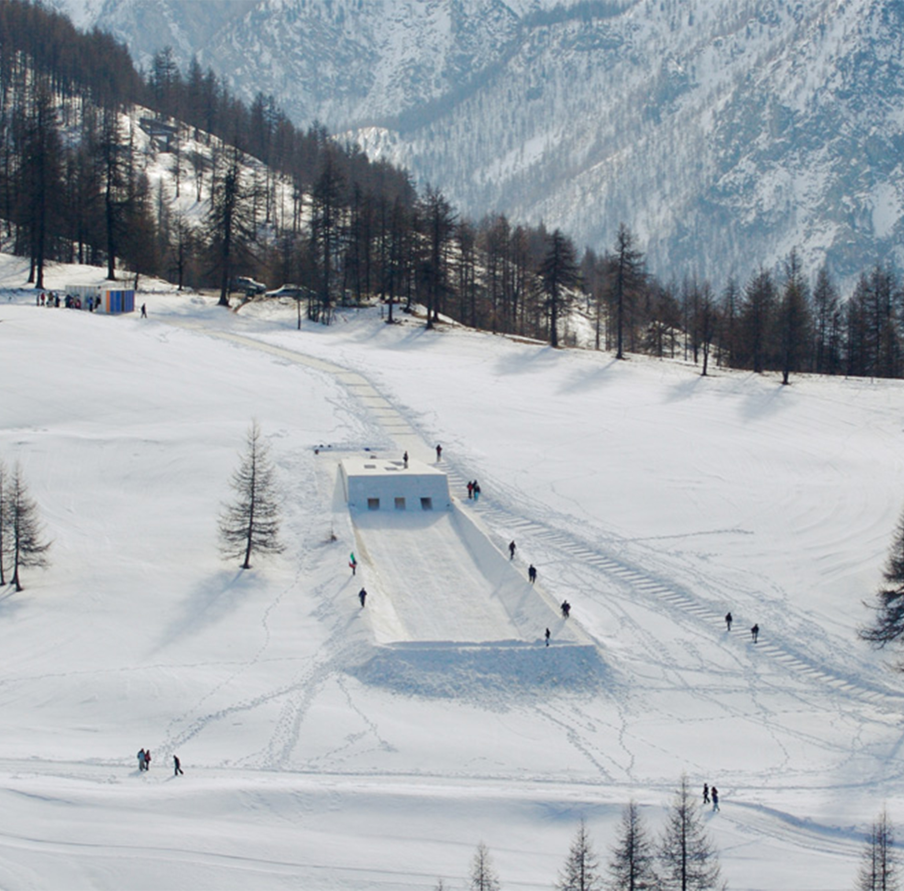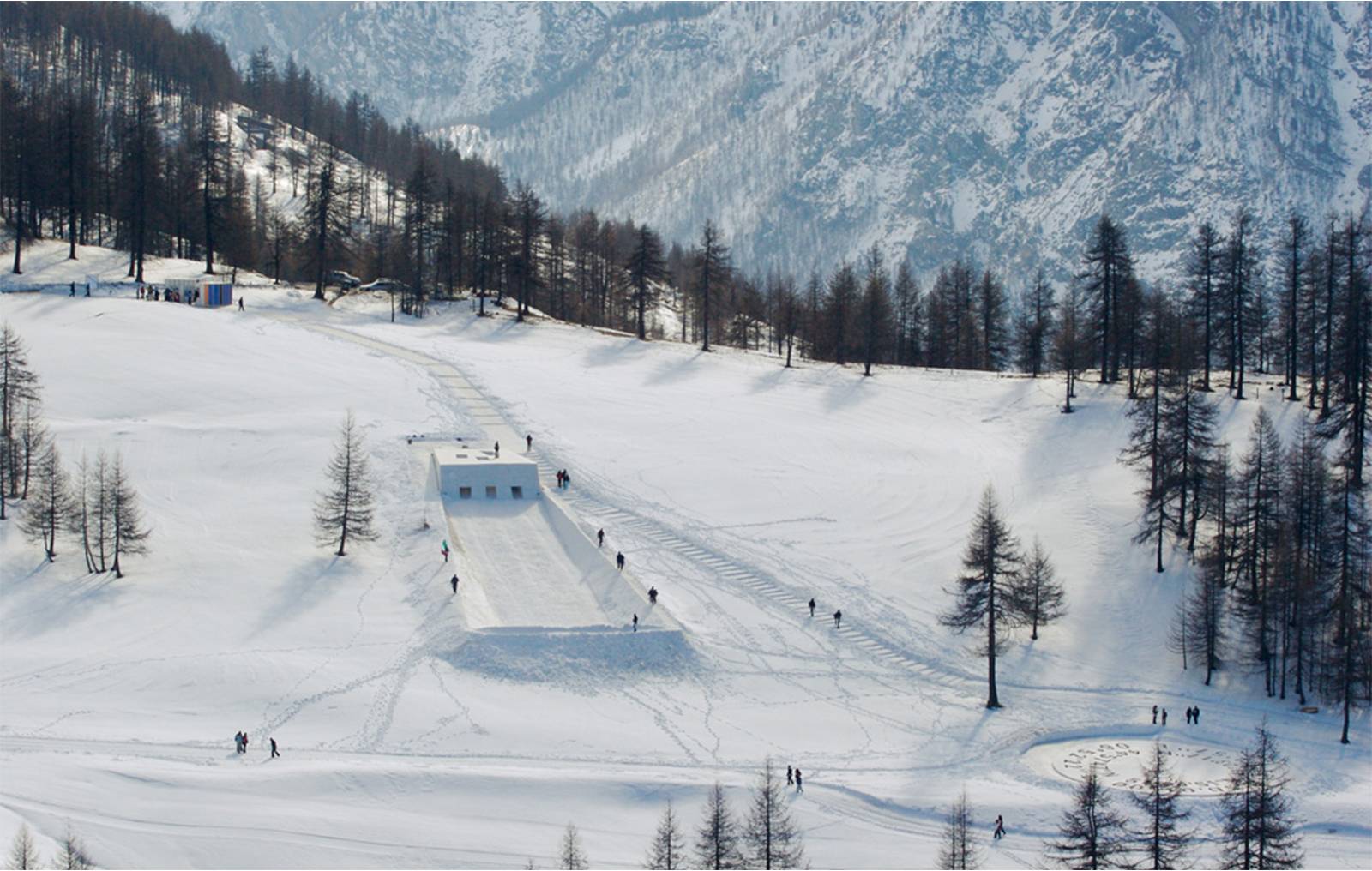 The collaborative premise for The Snow Show 2006 expands on the issues addressed by its predecessors, while incorporating a heightened attention to accessibility. Taking place in conjunction with the 20th Winter Olympic Games will provide The Snow Show 2006 with the opportunity to bring examples of cutting-edge contemporary art and architecture to an international, mainstream audience of millions. In contrast to the previous site, which was flat, narrow, and flanked by a frozen river, the distinctive physical features of the new location will greatly enhance the visceral experience of the viewers. The new location, at Sestriere in the Italian alps, has a unique topography that will allow the seven new projects to take advantage of varied settings, providing different levels for vantage and entrance points for each of the projects.