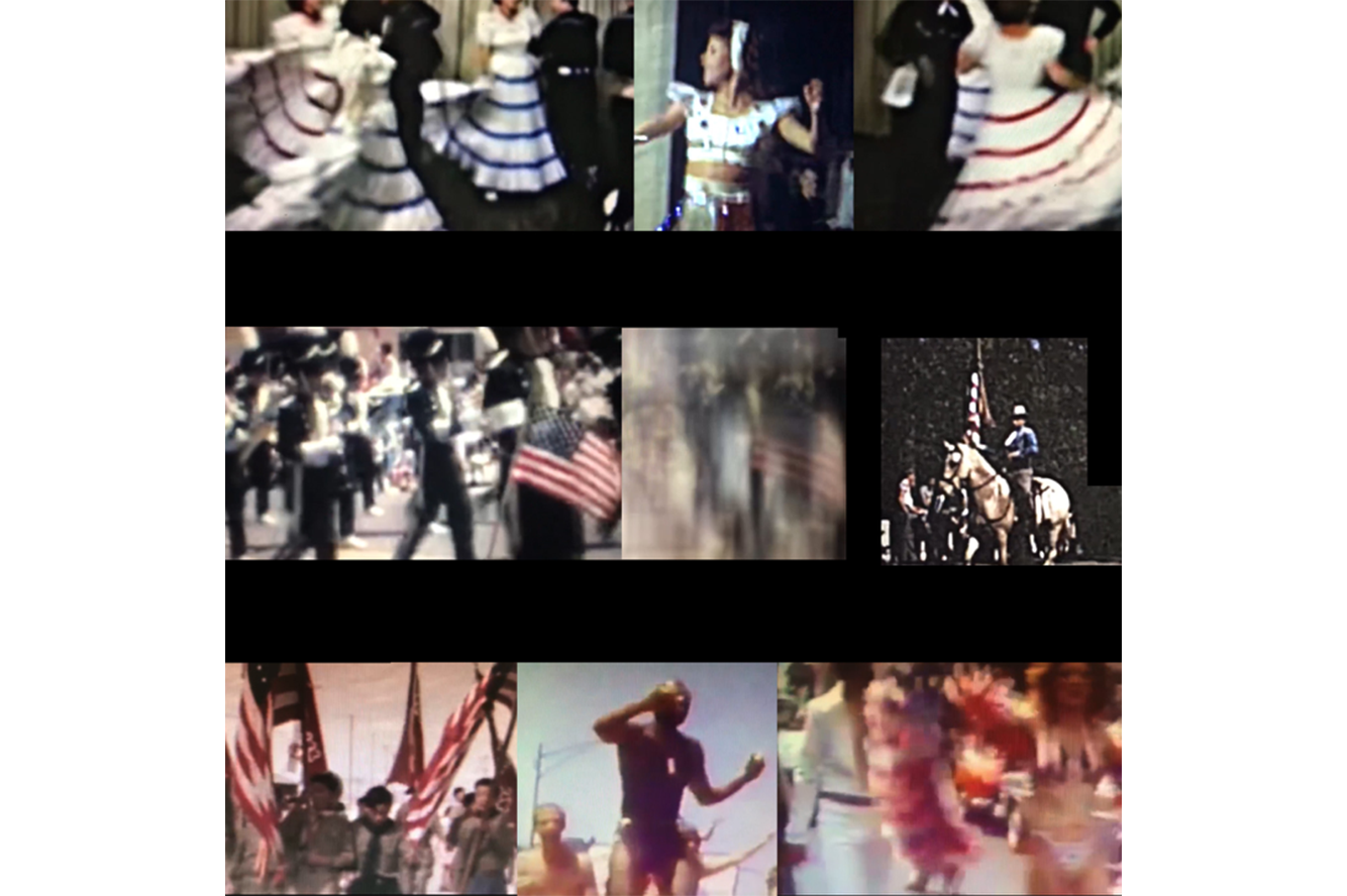 In Voice Crossing, archival films of holiday parades, marching bands, square dances, and family celebrations from throughout the Bay Area are projected through an array of rotating mirrors, creating a kaleidoscope of overlapping images. From the walls of the exhibition space comes the faint murmur of dozens of oral history recordings’ personal stories of immigration and internment camps, migrant workers and lawyers, the birth of Silicon Valley, the gay rights movement, the music and art scenes of the Bay area, and more. The images shift, dance, and blur; the voices obscure one another and fade into white noise. Together, sound and image evoke the complex ways in which memory and history dissolve into one another, as the life of a community emerges from the individual lives of those who have come before. Voice Crossing invites its audience to reflect on their own continuity with that past, to contemplate the relationship between the personal and the communal, and to interrogate the shared stories, rituals, and memories that bring them together.