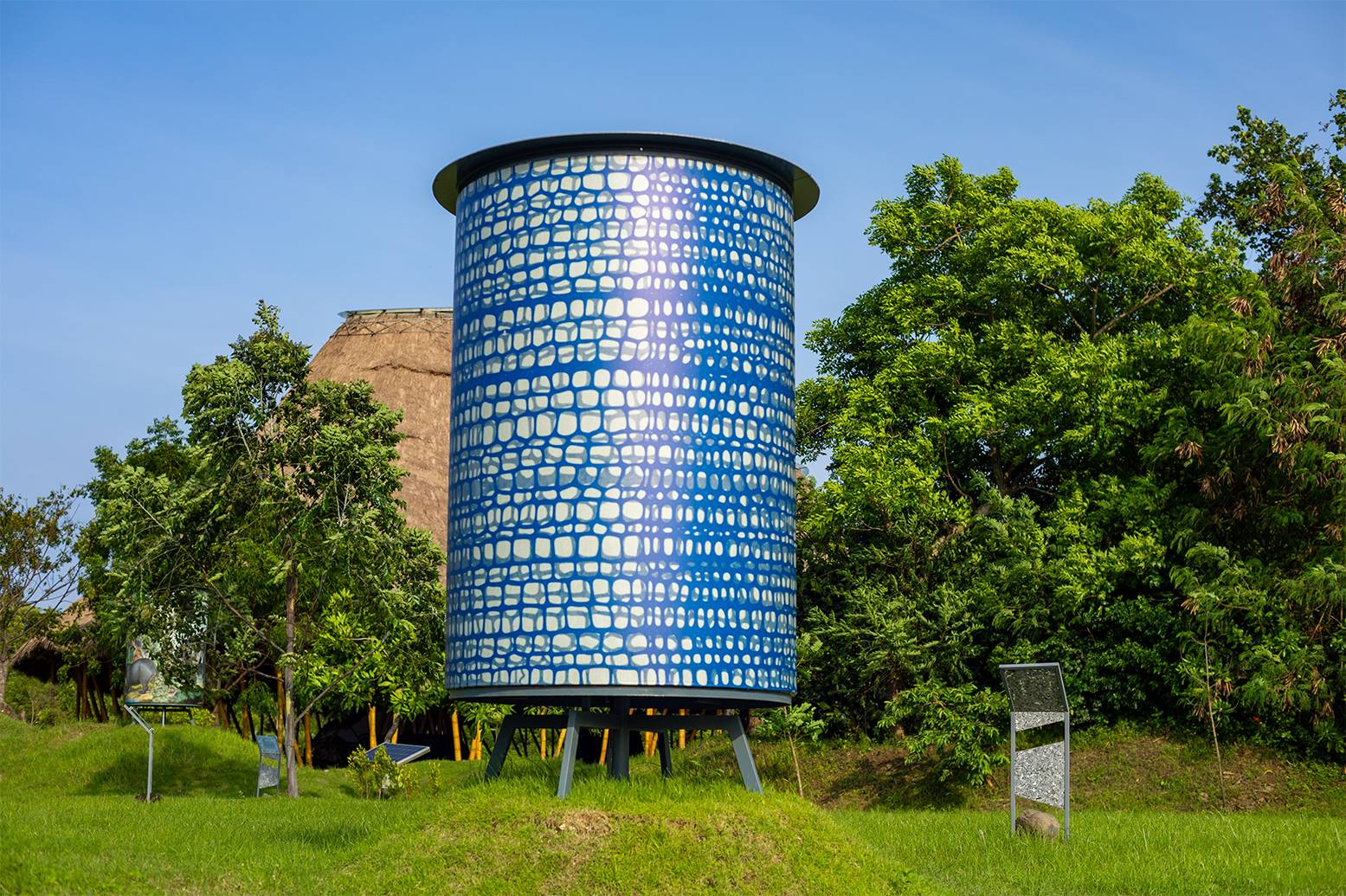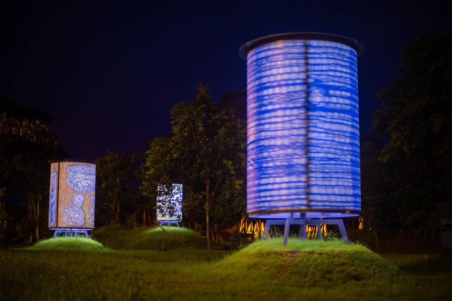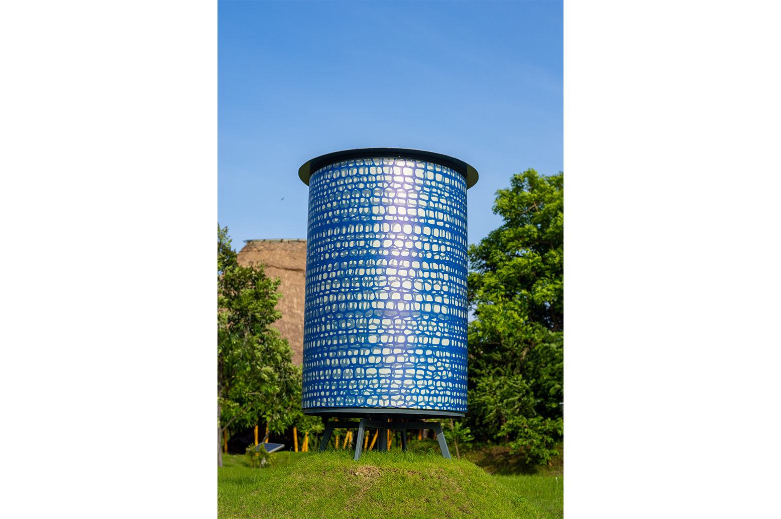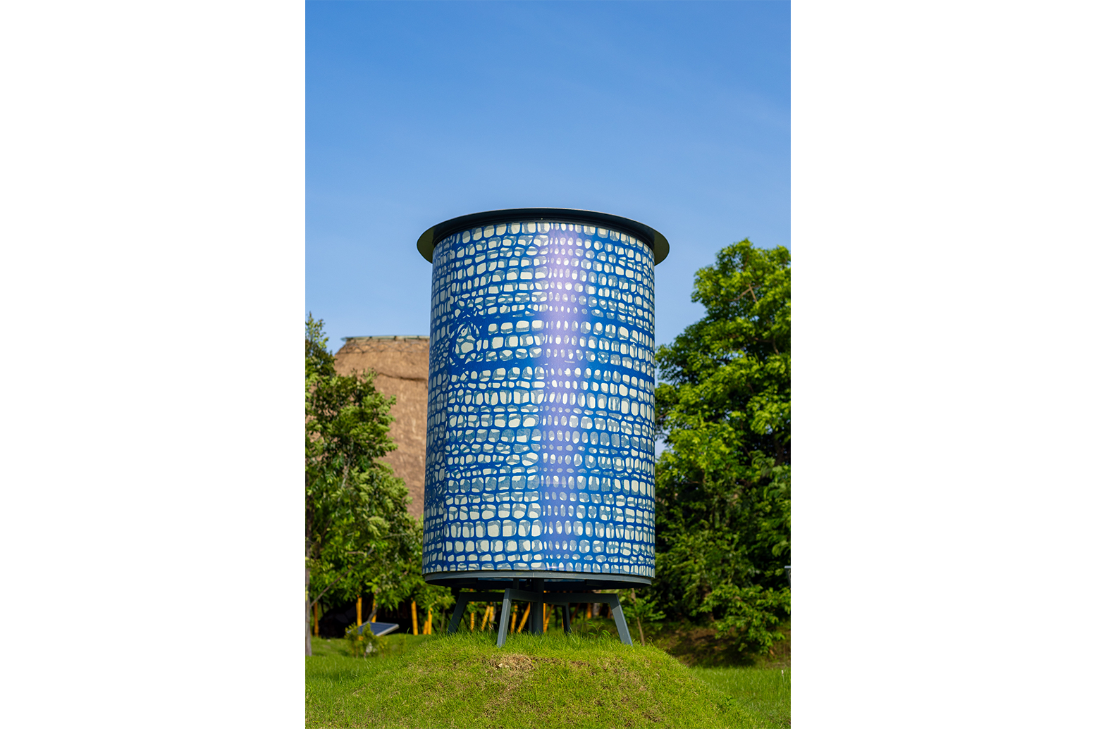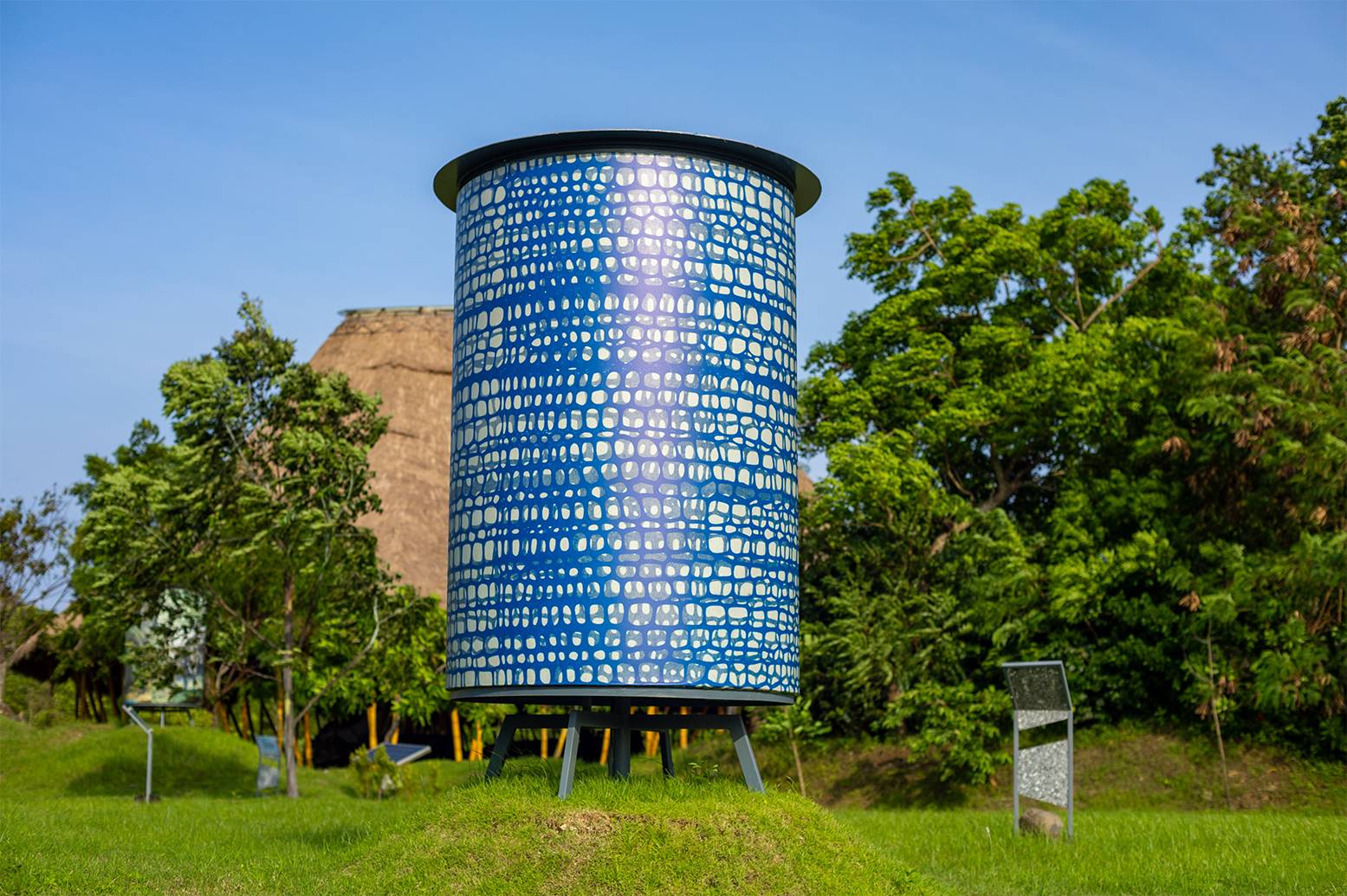 Interested in how scientists use tree rings to provide clues about past climate conditions, Abigail created Wai, a layered woodcut print depicting a microscopic view of tree ring patterns during wet and dry seasons. Essentially these intricate marks are a historical record of weather patterns over time. Wider rings signify abundant rain, while narrow rings indicate harsher conditions like drought. These carved lines memorialize a shift in climate affecting not only Hawaii but cherished environments all over the world.